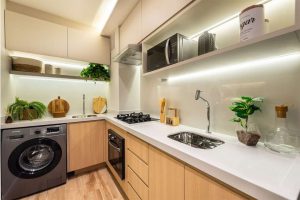 Cozinha com lavanderia conjugada do Bios Santo Amaro